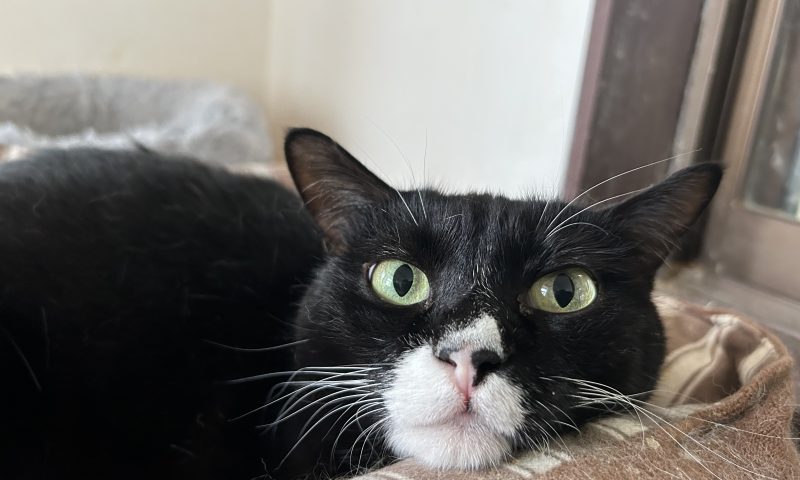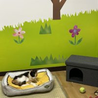 猫さんルームではコタくんがガラスの汚れを見つけて必死に