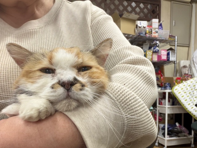 ペペちゃんは頑張って、他の猫がいても平静を保てる、抱っこはイヤだけど